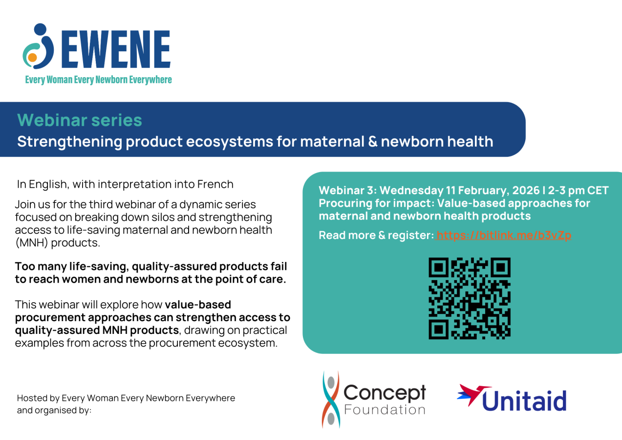 Second webinar in a series on Strengthening product ecosystems for maternal & newborn health, hosted by EWENE and co-organized by Unitaid and Concept Foundation.